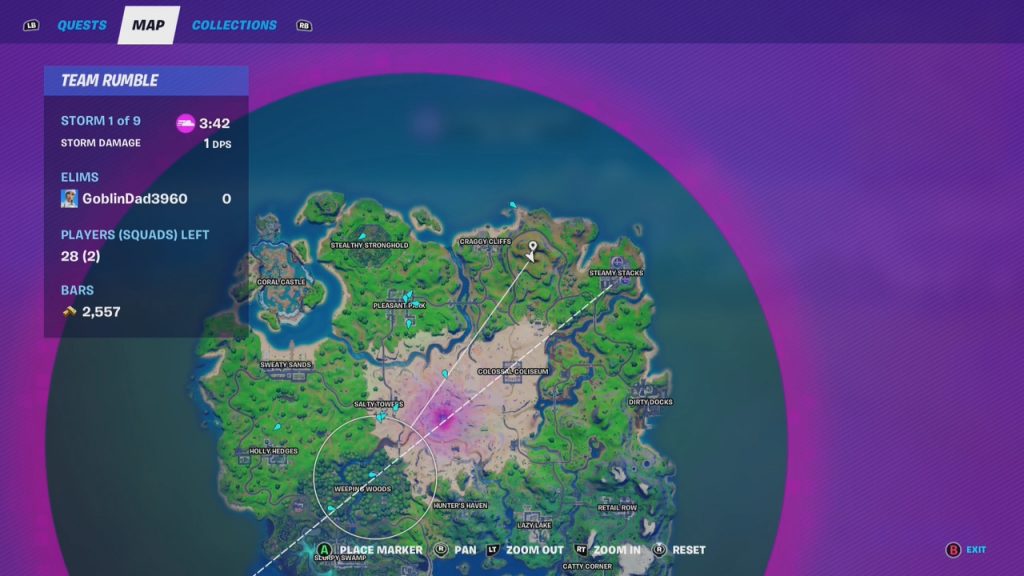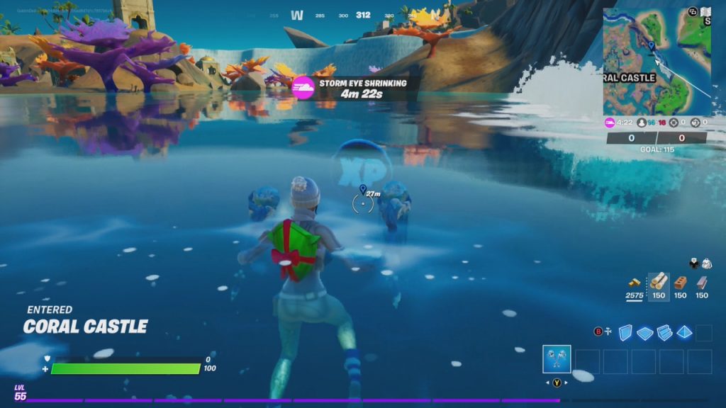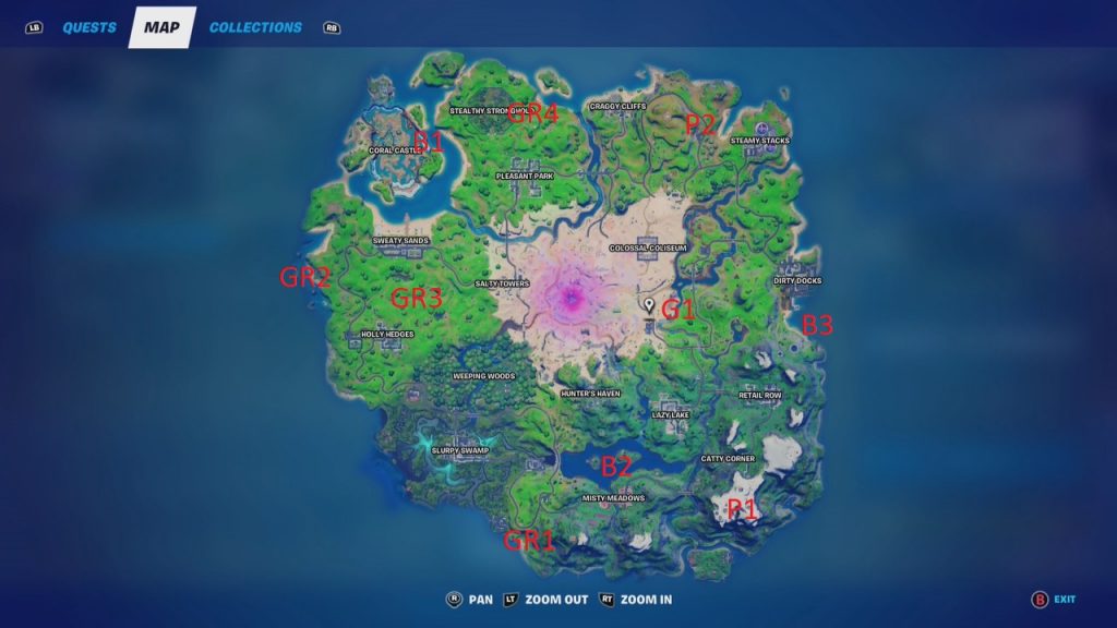 Don’t call it a comeback, but the XP Coins have reemerged in Week 7 of Fortnite Chapter 2 Season 5. There are a total of ten (10) XP coins up for grab. XP Coins are a sure-fire way of helping you level of your Battle Bass. The XP Coins are available the entire season! They can be found in Solo, Duo, Trio, Squad, and Team Rumble Matches. Our preferred method is Team Rumble because sometimes you have to build (i.e., box in those purple coins). You can collect these XP coins in any order. Here they are: