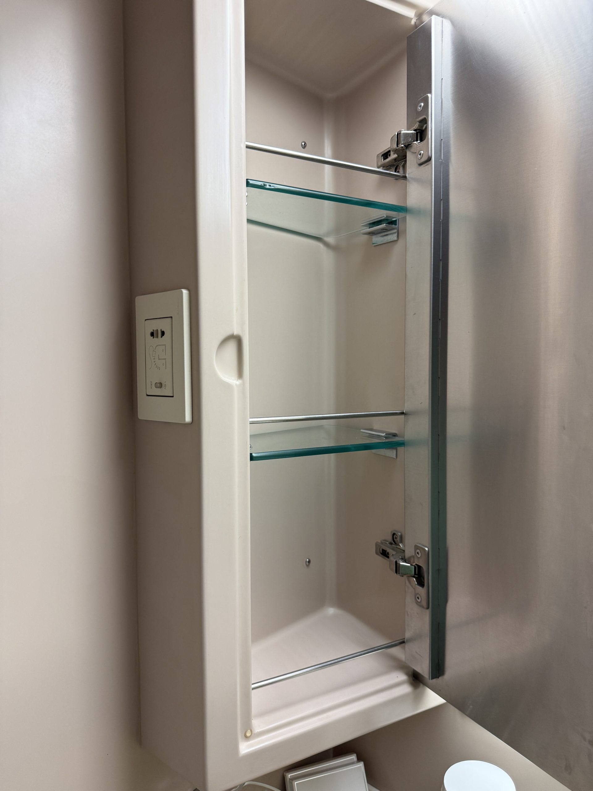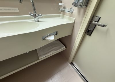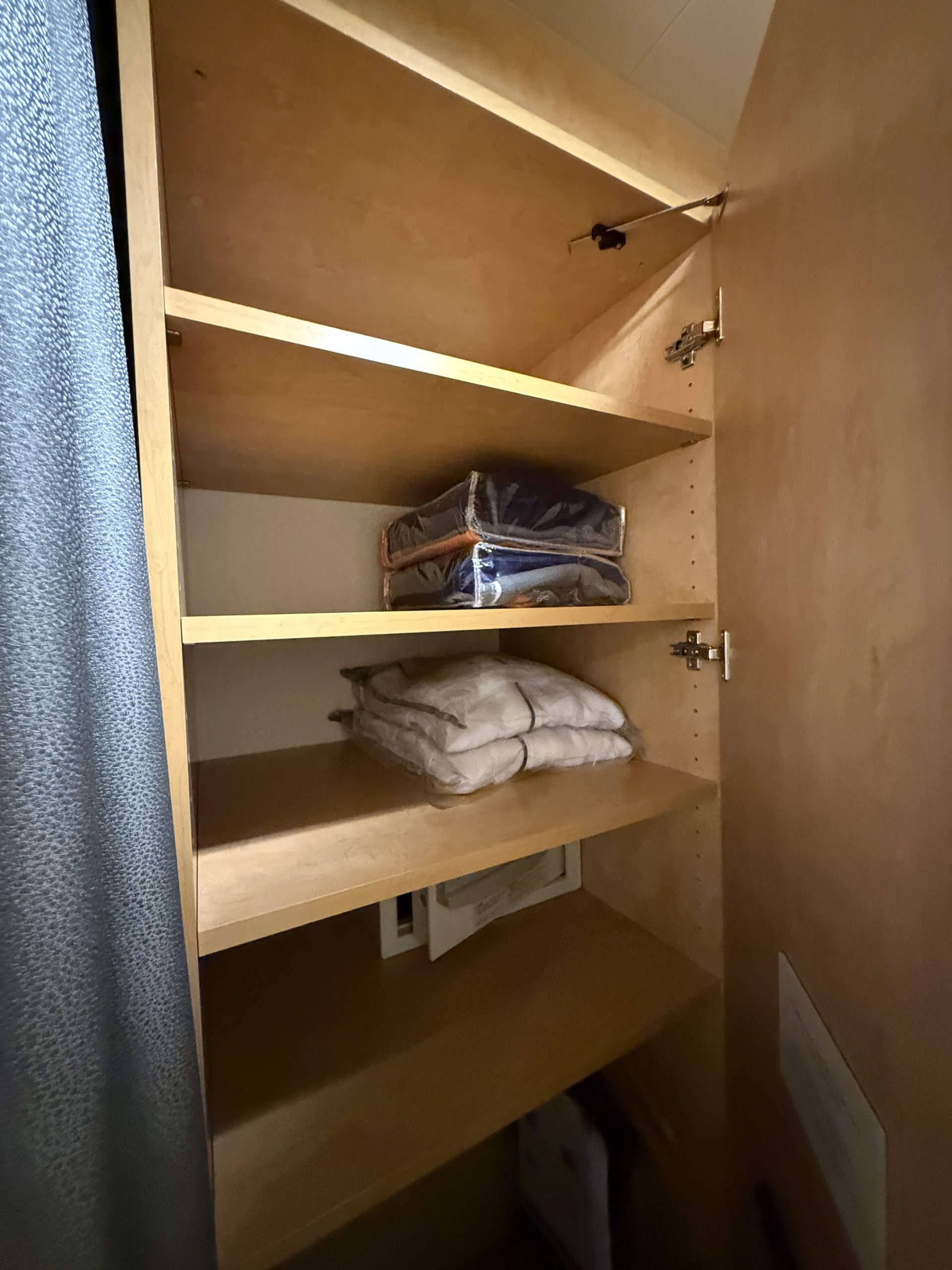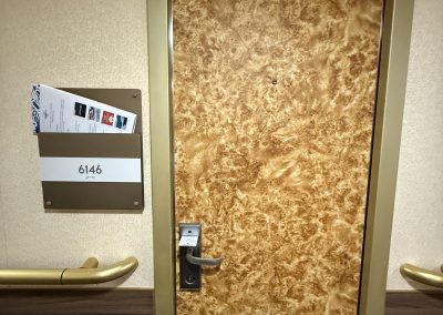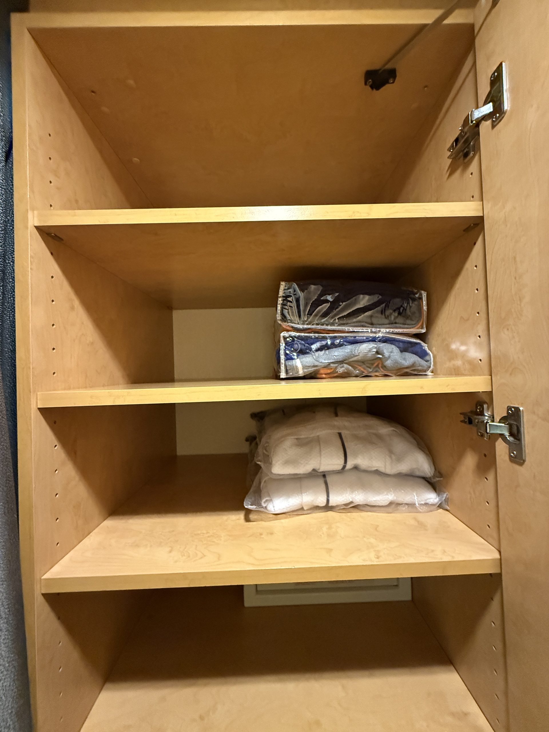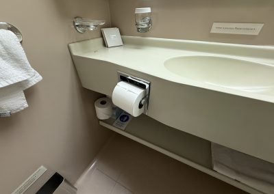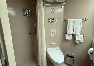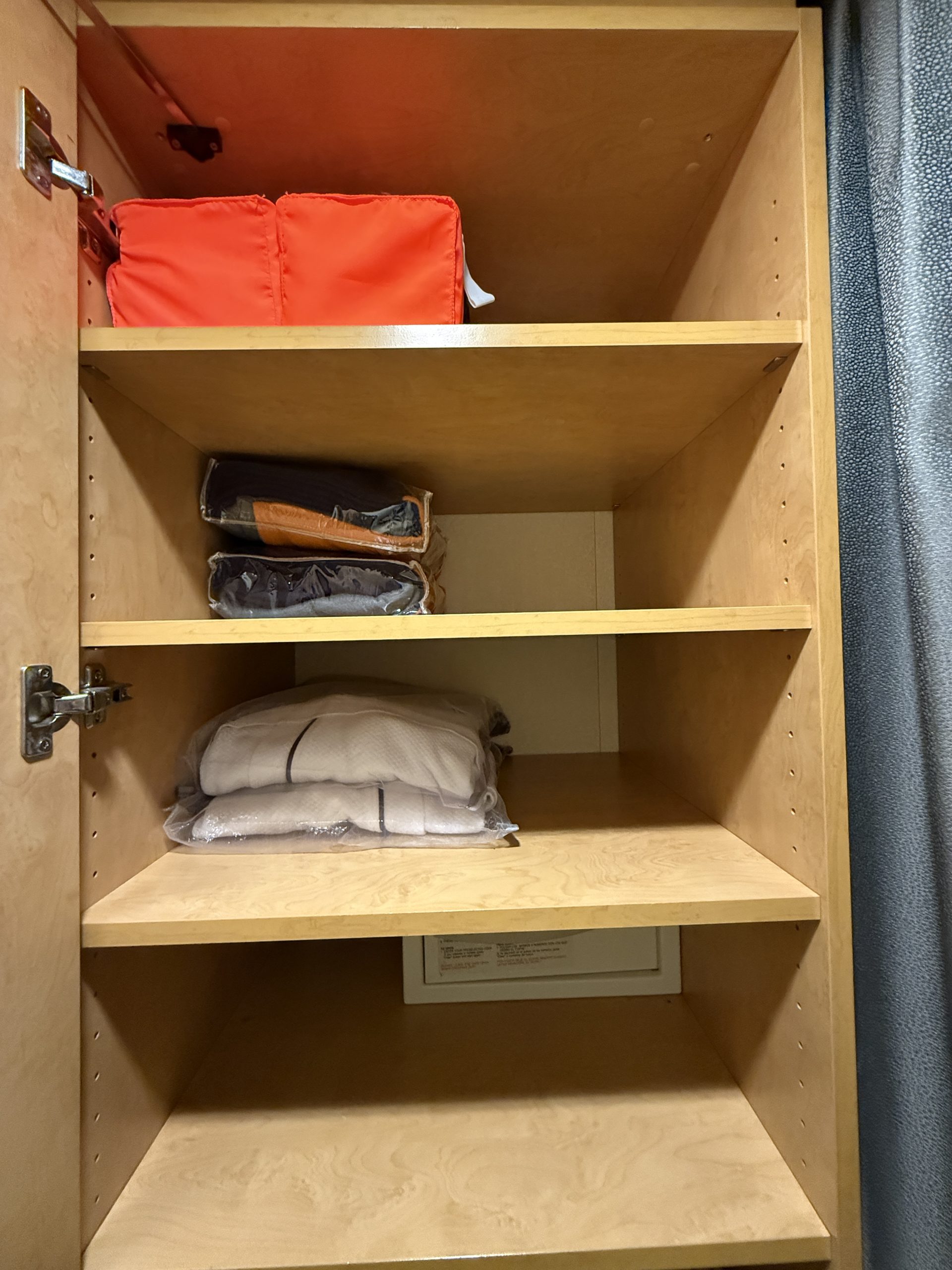 Let’s start with the basics, because these are interior staterooms, there is no balcony or view. The interior staterooms are decent size and measure approximately 170-207 sq. feet. However, the “connecting” feature is situated right near the desk and it’s virtually impossible to pass through the rooms when someone is seated at the desk. The “connecting” doors also do not open fully, so it’s also hard to view the TV when you have the “connecting” doors open.